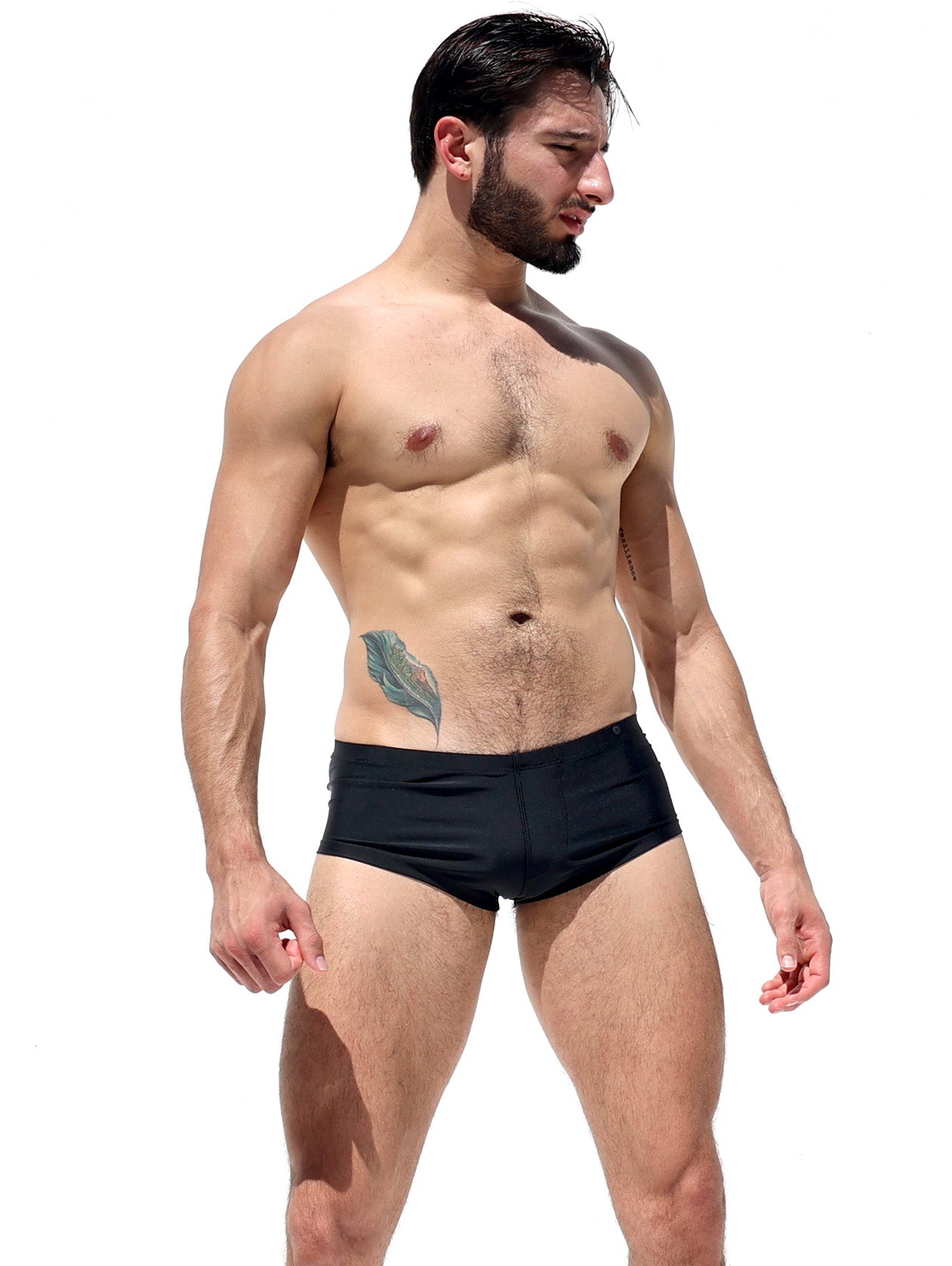 Confeccionado en nylon elástico negro azabache, se ajusta al cuerpo con precisión anatómica.